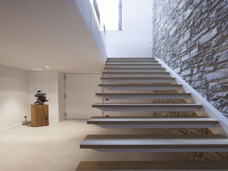 Cầu thang bê tông là giải pháp truyền thống được tin dùng bởi độ bền, ít chịu ảnh hưởng bởi thời tiết và an toàn khi sử dụng lâu dài. Tuy nhiên, bề mặt bê tông dễ gây cảm giác thô cứng nên các KTS thường kết hợp thêm đá ốp, gạch chống trân, lan can gỗ/sắt… để tăng tính thẩm mỹ cho cầu thang.