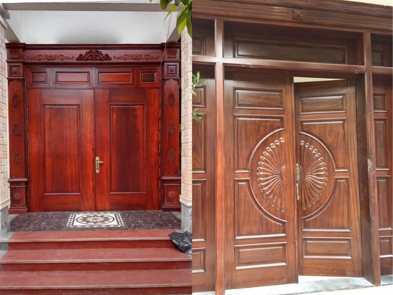- Cửa gỗ: Với độ bền cao, khả năng chống mối mọt và cong vênh tốt, đây là giải pháp an toàn cho ngôi nhà bền đẹp dài lâu. Loại gỗ này còn dễ dàng chạm khắc, tạo điểm nhấn tinh tế cho ngôi nhà từ những chi tiết nhỏ.