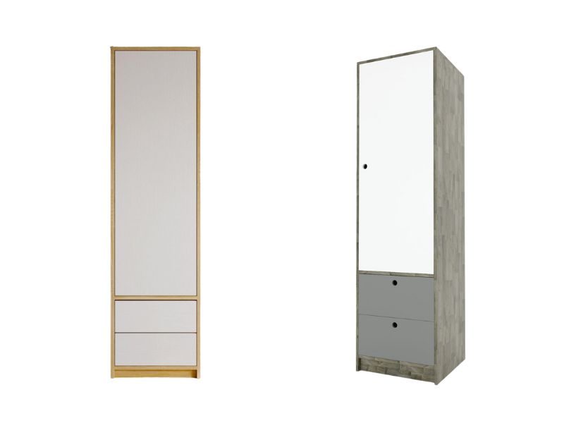 Đối với những căn hộ nhỏ, tủ quần áo 1 cánh là lựa chọn hoàn hảo để tối ưu không gian. Tủ nhỏ gọn dễ dàng bố trí ở góc phòng, thường có thanh treo ở ngăn trên và 2-3 hộc tủ ở dưới để phân chia quần áo. Kích thước tiêu chuẩn tủ quần áo 1 cánh thường: