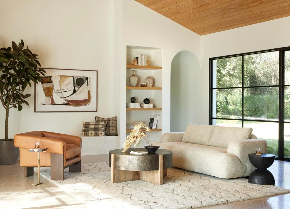 Đây là món đồ quan trọng nhất trong phòng khách, nên chọn sofa với chất liệu tự nhiên như vải lanh hoặc da, thiết kế đơn giản nhưng sang trọng.