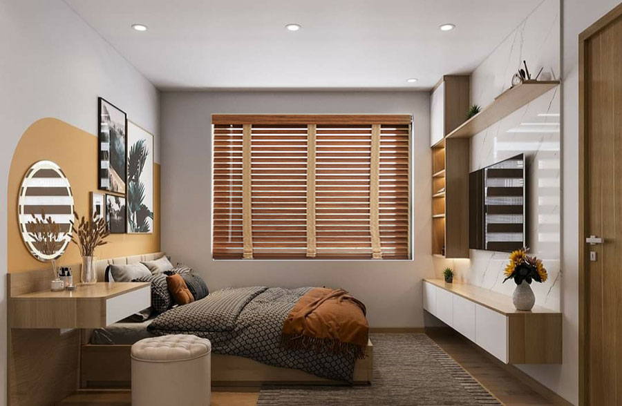 • Kết hợp với rèm vải cửa sổ phòng ngủ hoặc rèm cuốn để tăng tính sang trọng.