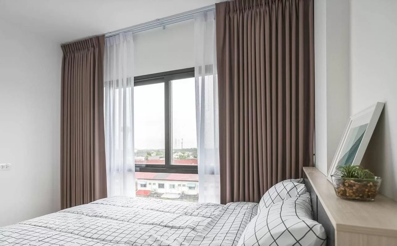 Khả năng chống nắng và cách nhiệt là yếu tố quan trọng khi lựa chọn mẫu rèm cho phòng ngủ, đặc biệt với phòng ngủ có cửa kính lớn. Gia chủ có thể tham khảo: