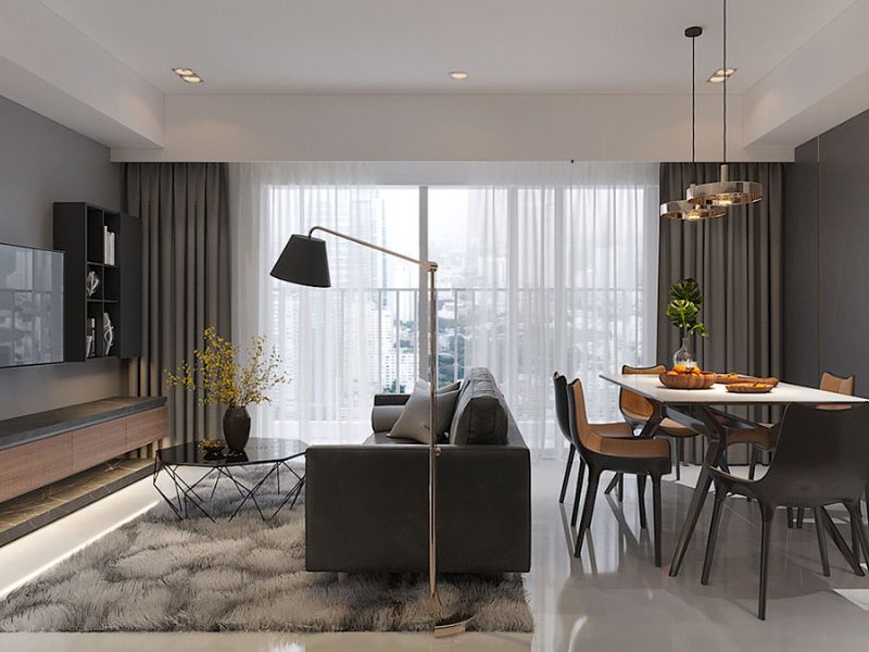 - Bố trí rèm 2 lớp để dễ dàng điều chỉnh ánh sáng, gió cho phòng khách