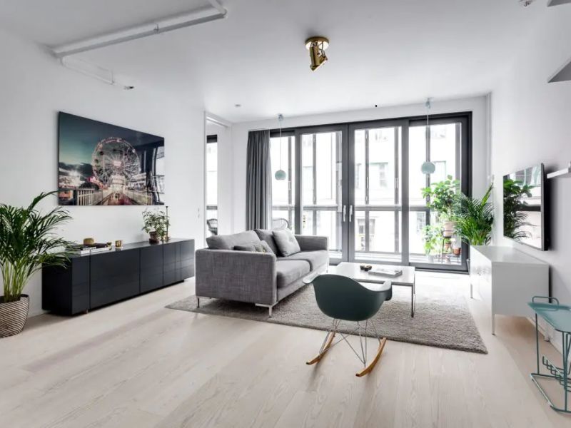 Phong cách Scandinavian (Bắc Âu) cũng là một trong những phong cách nội thất chuộng gam màu trung tính, gồm xám, trắng, be. Do đó, phòng khách màu xám phong cách Bắc Âu mang lại cảm giác sang trọng nhưng không kém phần ấm cúng, gần gũi.