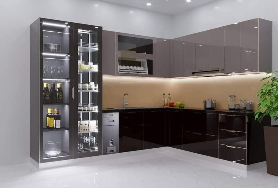 Tủ rượu kết hợp tủ bếp góc chữ L