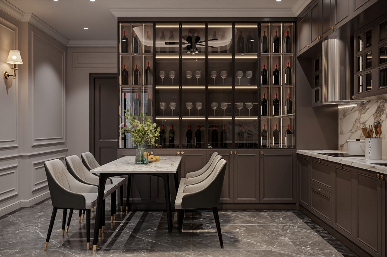 Tủ rượu sang trọng trong phòng bếp